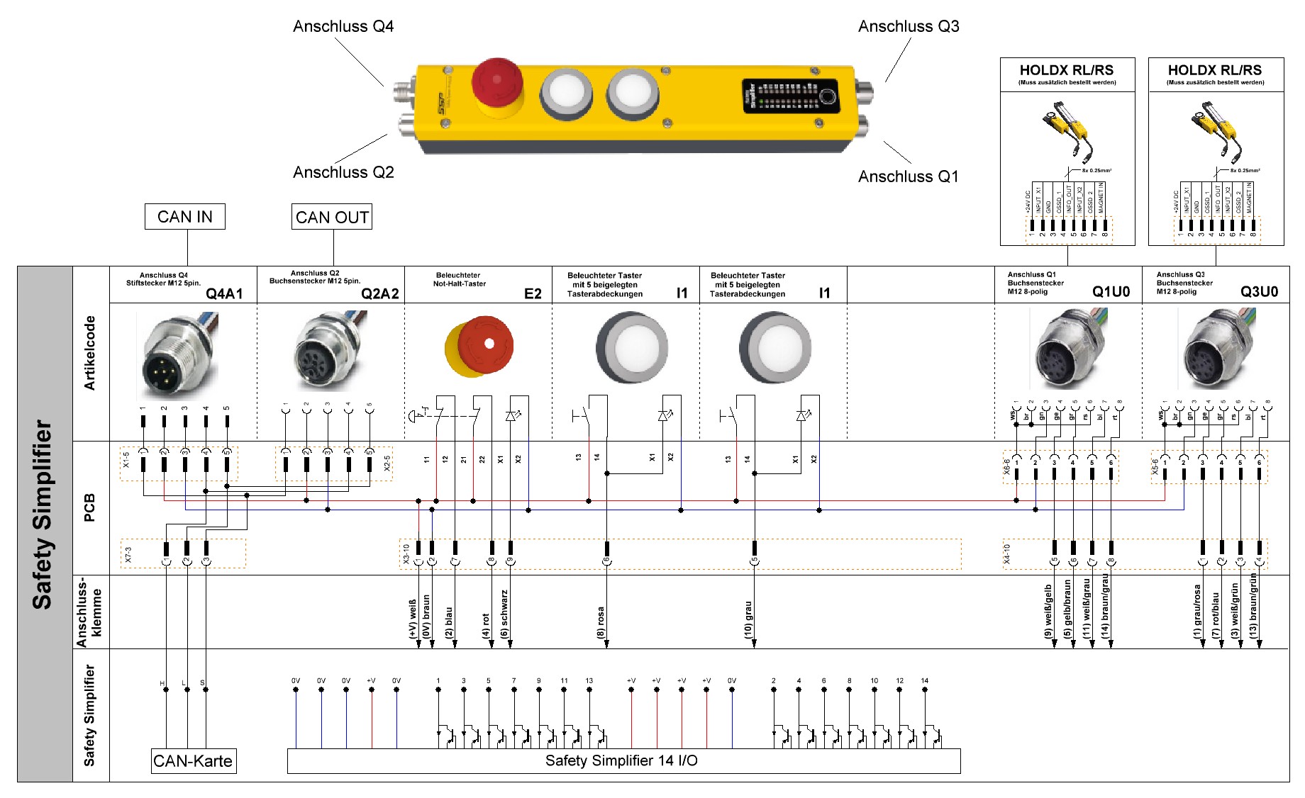 Betreff: S14LDRBCB-H09-E2-I1-I1-Q1U0-Q2A2-Q3U0-Q4A1-W173 Simplifier Gatebox CAN | for 2 x HOLDX