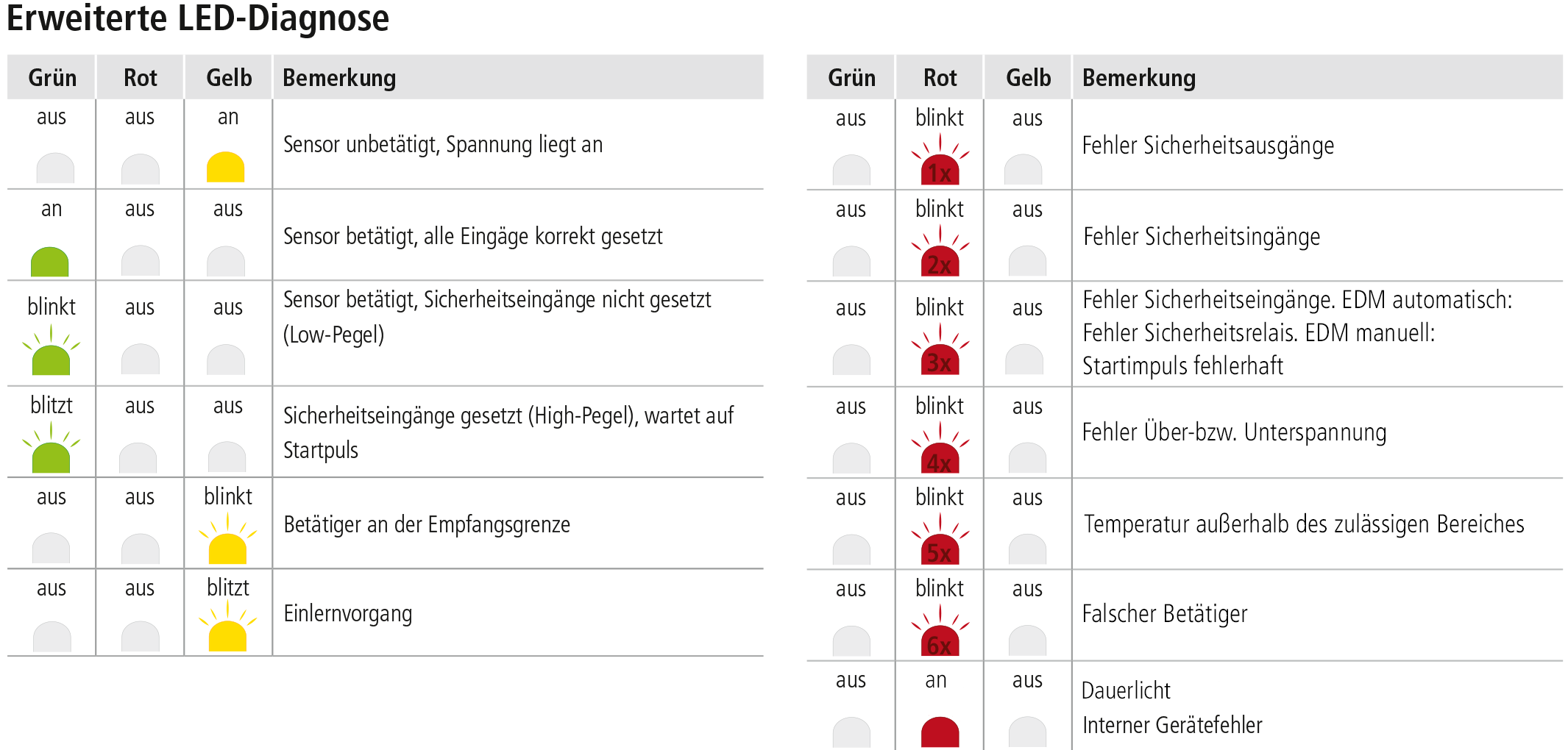 Die Diagnose erfolgt bedienerfreundlich über eine dreifarbige LED-Anzeige und ermöglicht so eine schnelle Wartung und Inbetriebnahme. Dank dem flachen Betätiger lässt sich SAFIX einfach und schnell auf unterschiedlichste Anwendungen montieren, egal ob Flügeltür, Hubtor oder Aluminiumprofil.