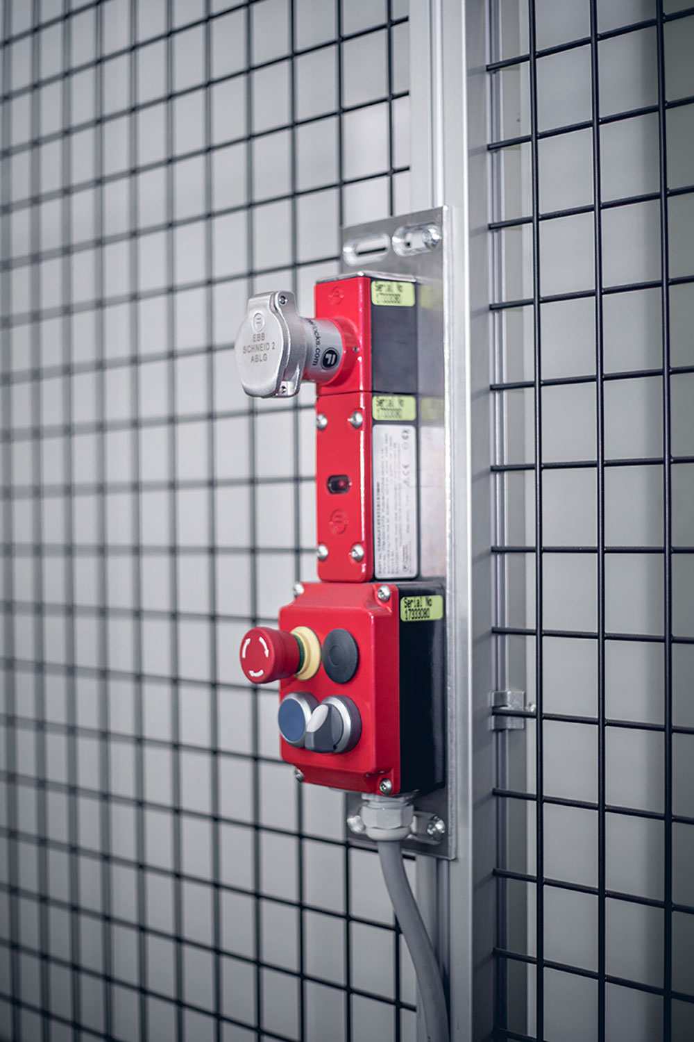 Another special feature is the Extracted Key-Function, which provides optimum protection by removing personal safety keys. The function is very simple: Before maintenance personnel enter the system, the safety key integrated in the switch must be removed and taken into the system. If the safety door is closed unintentionally, the system cannot be started without the key. There is also another switching unit with a lock inside the system. If the key is inserted there by the maintenance personnel, maintenance work on the cutter can be carried out at a safe speed.